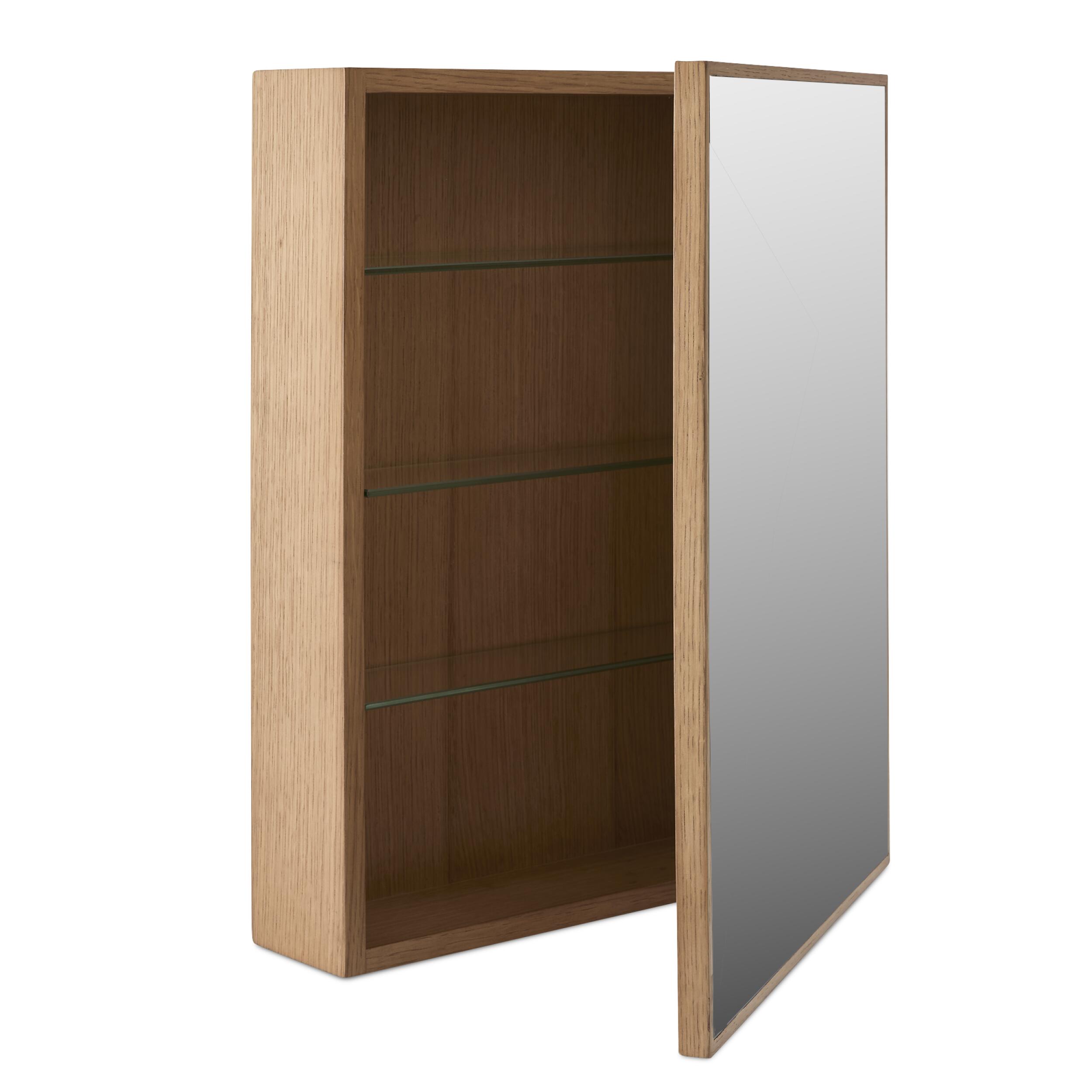 Medicinskåpet Raukstad bjuder in till lugna stunder i badrummet. Med sin mattlackerade yta i naturlig ek ger det en varm och inbjudande atmosfär i ditt hem.