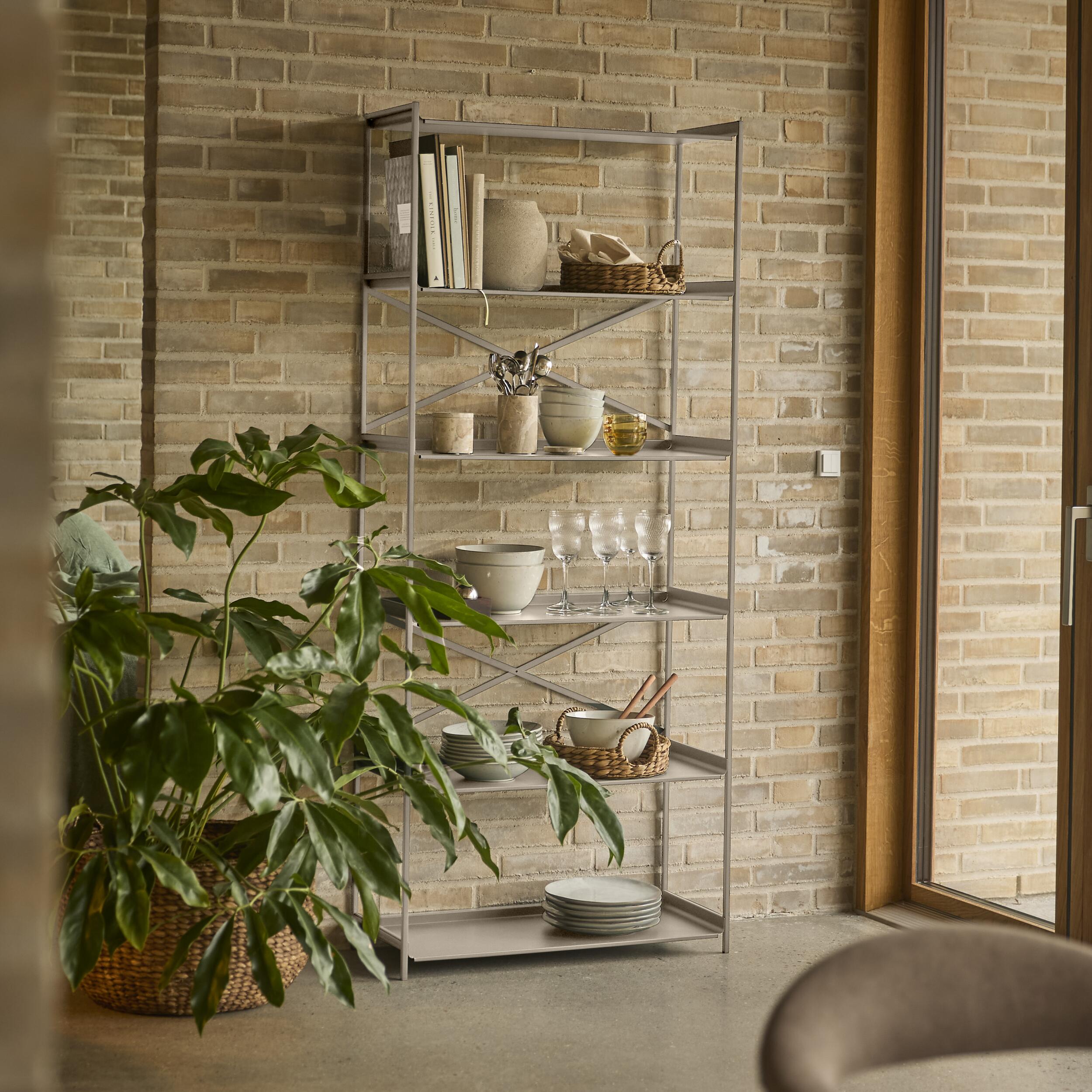 Sorta bokhylla är skapad för att ge ordning och struktur i din vardag. Med sina sex hyllplan ger den plats för både böcker och personliga skatter samtidigt som den ger en elegant look till ditt utrymme. Den pulverlackerade ytan i en sandfärgad nyans smälter naturligt in i alla inredningar.