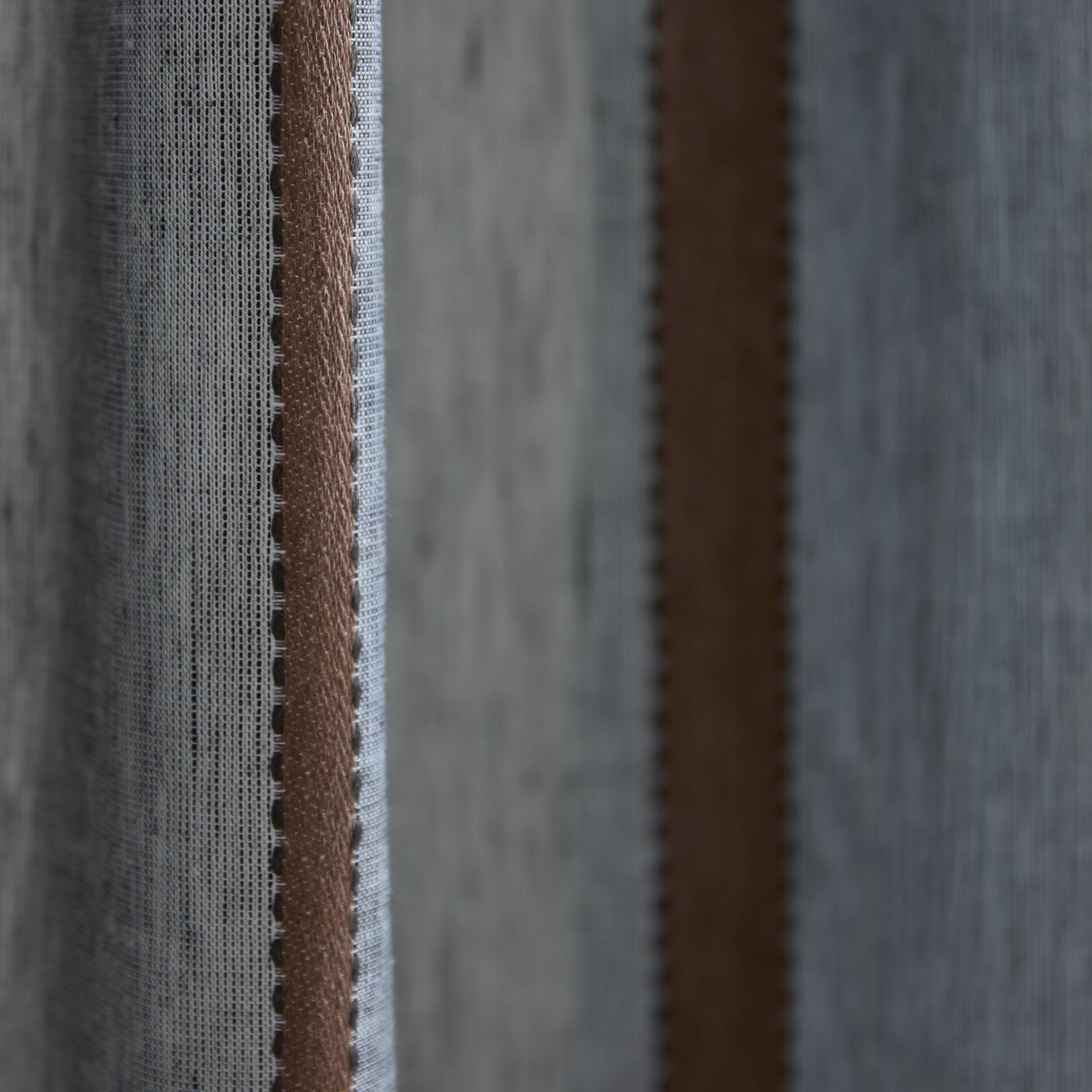 Frostdalen gardin är skapad för att ge en mjuk och inbjudande atmosfär i ditt hem. Med sina eleganta kopparfärgade ränder tillför den elegans till rummet. Oavsett om den hänger i vardagsrummet eller sovrummet smälter den naturligt in i inredningen och skapar en harmonisk balans mellan ljus och skugga.