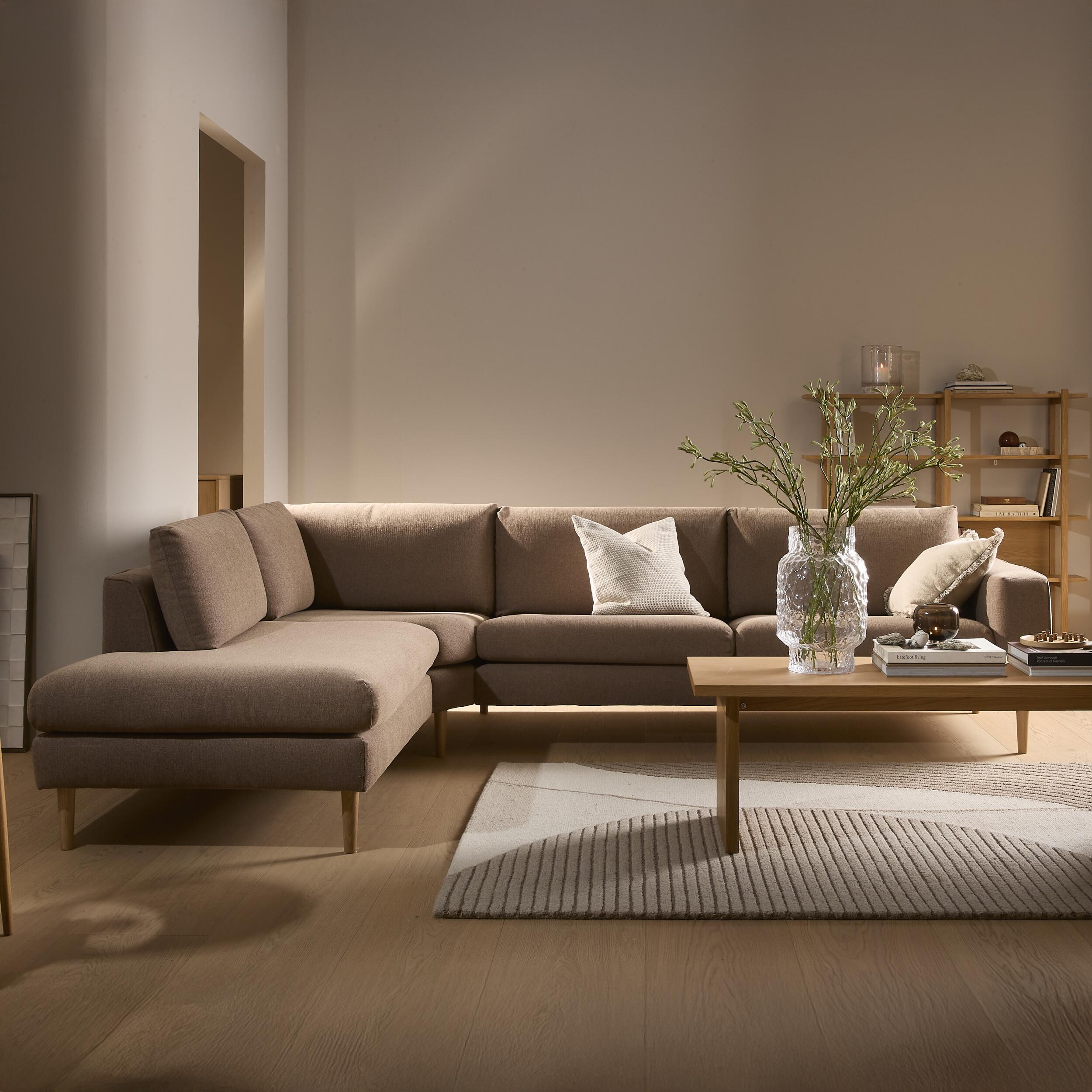 • Nyland är för dig som vill ha en mjuk landning efter en lång dag. Hörnsoffan med puffkant inbjuder till både avkoppling och närvaro, oavsett om du avslutar dagen ensam eller i gott sällskap. Den mjuka klädseln understryker den lugna atmosfären, medan formerna ger kroppen utrymme att slappna av.